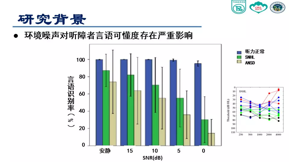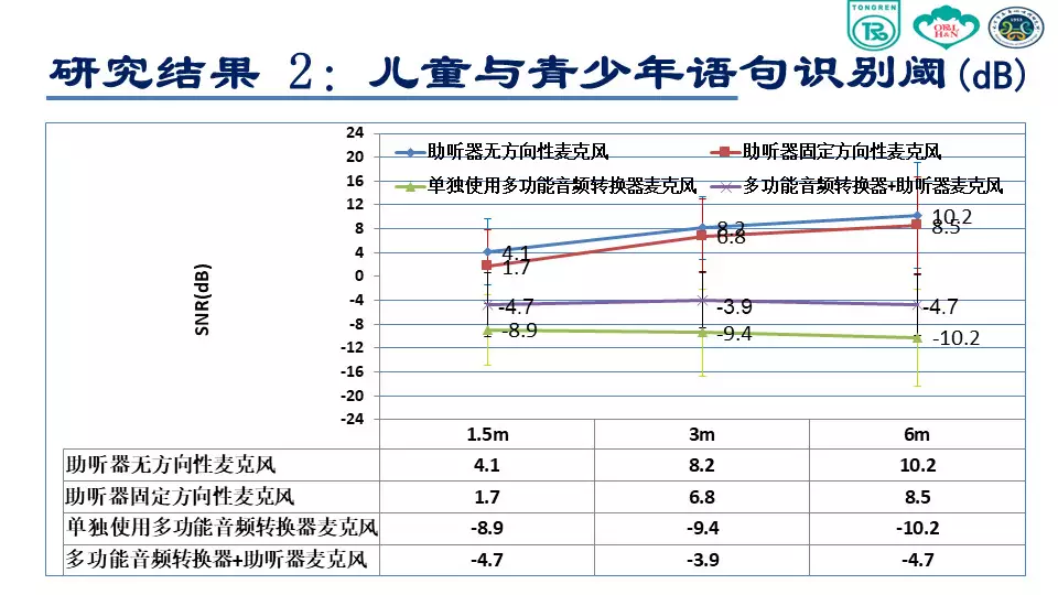 <br /><br /><br />環境噪聲對聽障者言語可懂度存在嚴重影響<br /><img src="/upfiles/201807200933345194.jpg" alt="" /><br />(感音神經性聾患者聽力圖)<br /><br /><br />在有噪聲的環境里,特別對于感音神經性聾患者來說非常困難,言語清晰度和可懂度會存在嚴重障礙。<br />在安靜環境或者信噪比為零的環境下,聽力正常人的表現基本接近 100%,說明聽力正常者的聽覺功能、抗噪功能是正常的。上圖綠色柱狀圖表示,伴隨著環境噪聲的增大,言語識別率遞減。<br /><br /><br /></span><p><span style="font-size:14px;">隨著與聲源距離的增加,強度迅速衰減,信噪比逐漸下降</span></p><p><span style="font-size:14px;"><img src="/upfiles/201807200933155202.jpg" alt="" /><br /></span></p><span style="font-size:14px;">已經實現的助聽輔助技術<br /><br /><br />FM 系統<br /><br /><br />數字無線配件:發射器、接收機數字信號傳輸<br /><br /><br />研究目的<br />本項課題主要是研究使用無線麥克風系統對聽障患者在噪聲條件下和遠距離環境下對言語識別能力改善的效果。<br /><br /><br />研究方法<br /><br /><br /><br /><br />助聽設備<br /><img src="/upfiles/201807200932488824.jpg" alt="" /><br /><br />測試材料<br /><br /><br /><br /><br />漢語普通話版噪聲下言語測試材料(Mandarin Hearing in Noise Test, MHINT)<br /><br /><br />成人測試材料<br /><br /><br />兒童測試材料<br /><br /><br />言語刺激聲<br /><br /><br />言語刺激聲分別來自受試者1.5m,3m和6m處<br /><br /><br />采用自適應的步驟來測試噪聲中的語句識別閾<br /><br /><br />環境噪聲<br /><br /><br />采用與測試材料本身頻譜接近的言語譜噪聲 (SSN)<br /><br /><br />噪聲強度為65 dB(A)<br /><br /><br /><br /><br />測試環境<br /><img src="/upfiles/201807200931496282.jpg" alt="" /><br /><br />??成人受試者<br /><img src="/upfiles/201807200931377495.jpg" alt="" /><br /><br />??程序設置<br /><br /><br />單獨使用助聽器麥克風(HA Mic Only):固定方向性<br /><br /><br />單獨使用迷你麥克風(Micro Mic Only)<br /><br /><br />同時使用助聽器麥克風和迷你麥克風(HA Mic+Micro Mic)<br /><br /><br />受試者距離言語信號揚聲器的距離<br /><br /><br />1.5m<br /><br /><br />3m<br /><br /><br />6m<br /><br /><br />隨機更換各種測試條件<br /><br /><br />兒童和青少年受試者<br /><br /><img src="/upfiles/201807200930455527.jpg" alt="" /><br />?程序設置<br /><br /><br />C1:單獨使用助聽器麥克風:全向性<br /><br /><br />C2:單獨使用助聽器麥克風:固定方向性<br /><br /><br />C3:單獨使用迷你麥克風<br /><br /><br />C4:同時使用助聽器麥克風和迷你麥克風<br /><br /><br />受試者距離言語信號揚聲器的距離<br /><br /><br />S1:1.5m<br /><br /><br />S2:3m<br /><br /><br />S3:6m<br /><br /><br />隨機更換各種測試條件<br /><br /><br />統計學分析<br /><br /><br />采用雙因素方差分析判斷受試者噪聲條件下言語識別閾是否受距離和程序設置的影響<br /><br /><br />分析距離對程序設置各水平的影響<br /><br /><br />分析程序設置對距離各水平的影響<br />研究結果<br />成人語句識別閾<br /><img src="/upfiles/201807200929474048.jpg" alt="" /><br /><br />?上圖中,藍色曲線表示助聽器麥克風打開的情況;綠色表示助聽器和迷你麥克風同時打開;紅色表示僅打開迷你麥克風。<br /><br /><br />我們可以看到,單獨使用助聽器麥克風情況下,言語識別閾從1.5m處的5.55 dB上升到6m處的13.11 dB。單獨使用迷你麥克風和使用迷你麥克風同時開啟助聽器麥克風這兩種情況下受試者言語識別閾隨距離變化不大。<br /><br /><br />在1.5m處單獨使用迷你麥克風比單獨使用助聽器麥克風信噪比可以獲得11dB的改善,同時這種改善會隨著距離的增加效果越來越明顯,在6m處可到20.6 dB。<br /><br /><br />兒童與青少年語句識別閾<br /><img src="/upfiles/201807200929214754.jpg" alt="" /><br /><br />??方向性麥克風的使用,隨著距離的增加,言語識別閾沒有明顯改善。<br />結論<br />單獨使用助聽器麥克風(全向性或方向性),伴隨距離增加,言語識別能力會顯著下降;<br /></span><p><span style="font-size:14px;">使用無線麥克風系統,言語識別能力不隨距離的改變而發生顯著改變,即可以顯著改善遠距離噪聲環境下言語識別能力。(內容來源網絡)</span></p><p><span style="font-size:14px;">聽覺有道助聽器品牌:http://www.zhengzhoufuke.com/</span></p>" />