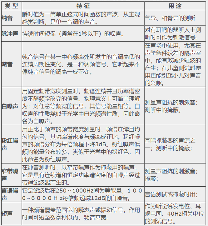 1. 描述聲波的常見物理量</p><p> 1)頻率:單位時間內物體振動的次數(次/秒),用Hz表示;</p><p> 2)強度和振幅:振幅是描述物體振動時傳遞能量的大小,單位是分貝dB;</p><p> 3)分貝:人耳的聽聲范圍太大,引起聽閾的最小聲強與引起痛覺的最小聲強相差近100萬倍,不易計數,因此以某一絕對聲強為基準(20μPa),將聲強的絕對值轉換為與該基準聲強的比值(聲強的級),再取以10為底的對數,最終計數單位變成了貝爾(Bell),為了更細的分級,現在普遍采用1/10B,即分貝(dB)為計數單位。</p><p> </p><center><img alt="" src="/upfiles/201906100126248309.png" width="423" height="154" /></center><p></p><p style="text-align: center;">音波示意圖</p><p style="text-align: left;"> 4)相位:指聲源相對于聽者的方向或位置,當頻率相同的聲音同時到達某點時,如果相位相同,其結果是使聲音顯得更響;當聲音一前一后分別到達時,相位出現部分抵消,其結果是使聲音顯得更輕,相位是確定聲源位置的依據;</p><p> 5)聲壓級(SPL):是用對數級的辦法來表示聲壓的相對大小,單位是dB SPL。計算公式為Lp(SPL)=20lg(P/P0),P0為基準聲壓,在空氣中取人耳1000Hz處能聽到的最小聲壓20μPa。</p><p> 2. 聽力學中常用的聲音信號</p><p> 下列聲信號在聽力測試、聲場測試、助聽器檢測等過程中經常被用到的。</p><p> </p><center><img alt="" src="/upfiles/201906100126317113.png" width="554" height="600" /></center><p></p><p> 更多詳情請登錄聽覺有道助聽器www.zhengzhoufuke.com</p>" />