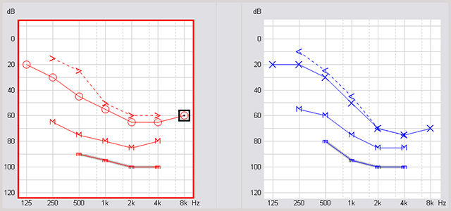 “為什么有時助聽器調了N次,弱聽人士就是不滿意呢?”</p><p> 這類案例常見于:聽覺動態(tài)范圍十分窄的,言語識別率極差的,雙耳不對稱性聽力損失,波動性聽力損失,陡降型聽力損失,上升型感音神經(jīng)性聽力損失......</p><p> </p><center><img alt="" src="/upfiles/201904220157244106.png" width="590" height="194" /></center><p></p><p> 上期介紹了調N次都不滿意的原因,今天,將介紹解決方法。 在碰到這類復雜案例時,驗配師應該怎么做,才能最大化地減少誤差,為弱聽人士實現(xiàn)更佳的助聽效果呢?</p><p> 根據(jù)多年的臨床聽力學經(jīng)驗,以及國內外的相關驗配經(jīng)驗,匯總了處理復雜案例的通用驗配技巧。</p><p> 驗配技巧主要從聽力評估、選擇助聽器和調試助聽器這三方面進行詳細介紹,總共有8大驗配技巧,且聽一一道來。</p><p> 1. 聽力評估時:多角度評估聽力損失情況</p><p> </p><center><img alt="" src="/upfiles/20190422015730551.png" width="440" height="250" /></center><p></p><p> 聽力圖往往是聽力損失診斷的金標準,但實際上,聽力圖上顯示的氣、骨導閾值和不適閾只是聽覺系統(tǒng)某一方面的情況,而并不能反映聽覺系統(tǒng)完整的狀態(tài)。例如,高頻死區(qū)。</p><p> 對于有高頻死區(qū)的弱聽人士來說,從聽力圖上雖能看到高頻的聽閾和不適閾,但實際上,殘余聽力的“質量”卻是很差的,大腦沒辦法對傳進來的高頻死區(qū)信息進行編碼,最終的結果就是言語辨別能力差,聽不清楚。</p><p> 所以,聽力損失應該由兩部分組成。</p><p> 一部分是可聽度,這個可根據(jù)純音測聽的聽力圖來判斷;另一部分是畸變,而這個是需要通過言語測試,尤其是噪音下的言語測試來測定。也就是說,殘余聽力的質量到底如何是需要通過言語測試來判斷。</p><p> 所以,驗配師需要從純音聽力圖之外的多方面聽力評估,來了解弱聽人士的真實情況,這對助聽器的驗配很重要。</p><p> 2. 選擇助聽器時:使用多通道非線性壓縮技術</p><p> </p><center><img alt="" src="/upfiles/201904220157367171.png" width="440" height="250" /></center><p></p><p> 我們知道,感音神經(jīng)性聽力損失的動態(tài)范圍普遍較窄,常有“小聲聽不到,大聲又覺吵”的重振現(xiàn)象。對于這類弱聽人士,可以使用多通道非線性壓縮技術。</p><p> 近三十年來,多通道非線性助聽器的研發(fā)一直致力于幫助弱聽人士在不同聆聽環(huán)境下能聽好,使用壓縮技術把完整的言語輸入信號“放入”弱聽人士變窄后的聽覺動態(tài)范圍。</p><p> 多通道非線性壓縮技術的目的是讓一切聲音都合適。</p><p> 所以,對于復雜案例,大多為非平坦、不規(guī)則的聽力圖形狀,建議使用多通道非線性壓縮技術對不同頻段進行細分處理,讓弱聽人士在其聽覺動態(tài)范圍內盡可能聽到環(huán)境中不同頻率不同強度的聲音。</p><p> 3. 選擇助聽器時:選擇頻響范圍較寬的助聽器</p><p> </p><center><img alt="" src="/upfiles/201904220157428948.png" width="440" height="250" /></center><p></p><p> 助聽器發(fā)展的重點之一是擴展頻響范圍。過去助聽器的高頻帶寬可能只能達到4kHz,但是現(xiàn)在的助聽器可以達到更高的帶寬,有些甚至可以接近10kHz或12kHz,相信以后助聽器的高頻帶寬可以更大。</p><p> 畢竟,助聽器可以拾取越寬頻響范圍的聲音,就有可能讓弱聽人士聽到越多的聲音信息。</p><p> 所以,與標準案例相比,在復雜案例的助聽器功能選擇時,可以選擇頻響范圍更寬的助聽器,給弱聽人士“還原”更多的聲音信息。</p><p> 當然,對于存在高頻死區(qū)的弱聽人士來說,聽覺系統(tǒng)不能編碼這些高頻帶寬的信息,反而會帶來失真和不適,所以這類弱聽人士的助聽器調試需要適當控制高頻范圍。</p><p> 4. 選擇助聽器時:移頻可能是個不錯的選擇</p><p> </p><center><img alt="" src="/upfiles/201904220157483059.png" width="440" height="250" /></center><p></p><p> 移頻,簡單的說就是將無法補償?shù)母哳l(如重度或極重度聽損)“移”到中頻去補償,這是改善高頻可聽度的一種方法。</p><p> 不過,如果有些弱聽人士沒辦法利用部分高頻信息(即高頻死區(qū)),那么移頻就得相應做調整。</p><p> 此時的移頻可能不是簡單地根據(jù)高頻的聽閾進行移頻補償,更多的時候,我們可以利用移頻將高頻死區(qū)部分“移除”到較低頻率,以改善這類弱聽人士對高頻言語的理解。</p><p> 如何知道哪些高頻是死區(qū),可以通過TENS測試進行判斷。</p><p> 移頻是一個不錯的選擇,但它同樣不是萬能的,需要根據(jù)具體聽力情況具體分析,否則很有可能適得其反,造成額外的失真、不適。</p><p> 5. 助聽器調試時:輸入完整、準確的純音測聽數(shù)據(jù)</p><p> </p><center><img alt="" src="/upfiles/20190422015753726.png" width="640" height="300" /></center><p></p><p> 正如上一期文章給我們的啟示之一,要想盡可能得到準確的增益補償,完整、準確的純音測聽數(shù)據(jù)至關重要,這點在處理復雜案例時,更是基礎的基礎!</p><p> 在助聽器調試時,我們通常都會讓驗配處方公式幫我們快速、較準確地計算出各類驗配參數(shù),如小聲、中聲、大聲增益。</p><p> 而處方公式是根據(jù)純音測聽數(shù)據(jù)來進行運算的,不同的處方公式所需的數(shù)據(jù)略有不同。 有些只需氣導聽閾,有些需要氣導和骨導聽閾,有些則在氣、骨導聽雨之外,還需要不適閾和舒適閾。</p><p> 如果我們只輸入氣導聽閾,對于需要骨導聽閾的情況,則只能