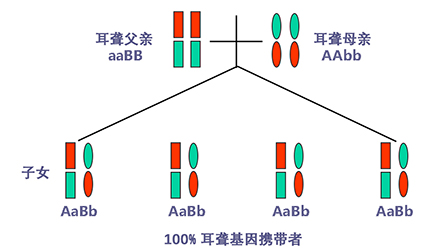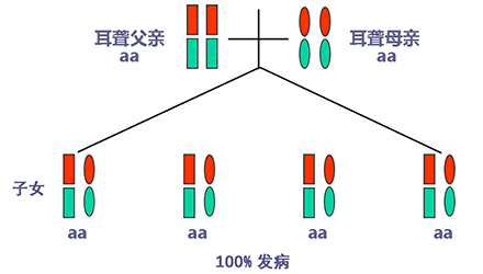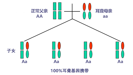聽力正常有時只是“表象”,如果骨子里“隱藏”著聽損致病基因,這代“躲”過了聽力損失,可是下一代、下下一代呢?</p><p> 生活中我們會發現,有一些父母雙方都有正常的聽力,但生出的孩子卻患有遺傳性聽力損失,很多人都會感到詫異,甚至父母本身都無法相信自己竟然生出了弱聽的孩子。</p><p> 其實,此類“怪異事情”的發生離不開基因的作用,這與遺傳性聽損中的常染色體隱性遺傳密切相關。</p><p> 今天就帶大家看看:常染色體隱性遺傳性聽損是怎么一回事?它有什么特點呢?基因又是如何“從中作祟”的呢?</p><p> 先來說說隱性遺傳為什么“隱藏”在骨子里</p><p> 俗話說,龍生龍,鳳生鳳,老鼠的兒子會打洞。這些表現都是基因所賦予的、與生俱來的,我們稱這種表現是顯性的。但有時,即便你骨子里帶著那份基因,可是沒有表現出來。</p><p> 例如上文說到的,父母雙方聽力正常,但其實他們仍有聽損致病基因,這種表現就叫隱性。</p><p> </p><center><img alt="" src="/upfiles/201904260337585875.png" width="440" height="250" /></center><p></p><p> 接著說說常染色體隱性遺傳性聽損“隱藏”的聽力損失</p><p> 常染色體隱性遺傳性聽損是指與聽力損失表型相關的基因位于常染色體上,是最常見的遺傳性聽損,約占80%。 一般而言,這類聽力損失多指非綜合征型聽損,即聽力下降是其唯一臨床表現,大多數患者癥狀早發且程度較重。</p><p> 這類聽力損失只有在來自父母的等位基因均攜帶致病突變時才出現聽力下降。</p><p> </p><center><img alt="" src="/upfiles/201904260338048765.png" width="440" height="250" /></center><p></p><p> 根據人類基因組命名委員會的規則,以DFNB來表示常染色體隱性遺傳性聽損。</p><p> 第一個致病基因座位表述為DFNB1,此后依據基因座發現及獲得命名的時間順序,依次命名為DFNB2,DFNB3……</p><p> 目前,常染色體隱性遺傳的基因座位一共有86個。其中DFNB1和DFNB18中各有兩個聽損致病基因,其他為各一個聽損致病基因。</p><p> 例如,GJB2基因是中國人最常見的聽損致病基因,在兒童非綜合征聽損中占40%,其基因座位為DFNB1。</p><p> </p><center><img alt="" src="/upfiles/201904260338091241.png" width="440" height="250" /></center><p></p><p> 聽損隱性遺傳表現各式各樣不是想“躲”就能“躲”</p><p> 涉及到不同聽損致病基因的共同作用,常染色體隱性遺傳方式有很多,下面就以最常見且最簡單的方式進行舉例分析:</p><p> 1. 父母雙方聽力正常,都為聽損致病等位基因的攜帶者(Aa),則子女中有25%的概率患有聽力損失,50%的概率為聽損致病基因攜帶者。</p><p> </p><center><img alt="" src="/upfiles/201904260338147337.png" width="440" height="250" /></center><p></p><p> 2. 父母雙方都患有聽力損失,且聽損致病基因為等位基因(aa),則子女基因都為(aa),100%患有聽力損失,也就是代代相傳。</p><p> </p><center><img alt="" src="/upfiles/20190426033818859.png" width="440" height="250" /></center><p></p><p> 3. 父母一方為聽力正常者(AA),另一方患有聽力損失(aa),則子女基因都為(Aa),即聽力正常的聽損致病基因攜帶者。</p><p> </p><center><img alt="" src="/upfiles/201904260338249987.png" width="440" height="250" /></center><p></p><p> 4. 父母一方為聽力正常的聽損致病基因攜帶者(Aa),另一方患有聽力損失(aa),則子女基因50%的概率為聽力正常但攜帶聽損致病基因(Aa),50%的概率患有聽力損失(aa)。</p><p> </p><center><img alt="" src="/upfiles/201904260338297827.png" width="440" height="250" /></center><p></p><p> 5. 父母雙方都有聽力損失,但非等位基因,父親為(aaBB),母親為(AAbb),則子女基因都為AaBb,即100%的概率聽力正常。</p><p> </p><center><img alt="" src="/upfiles/201904260338427827.png" width="440" height="250" /></center><p></p><p> 常染色體隱性聽損遺傳的特征下一代“躲”得過嗎?根據如上分析,我們可以總結常染色體隱性遺傳性聽損具有以下特征:</p><p> 1. 聽損致病基因位于常染色體,因而聽損致病基因的遺傳與性別無關,即男、女性的患病機會均等;</p><p> 2. 系譜中通常看不到連續傳遞現象,往往是散發病例,但同胞中可有多人患病;</p><p> 3. 患者的雙親一般不患病,但都是致病基因的攜帶者;</p><p> 4. 患者的同胞有1/4的風險患病,患者表型正常的同胞中有2/3的概率為攜帶者;</p><p> 5. 患者的后代一般不發病,但一定是聽損致病基因攜帶者;</p><p> 6. 近親婚配時,子女的發病風險顯著提高,因為共同的祖先可能傳遞給他們共同的突變基因。</p><p> </p><center><img alt="" src="/upfiles/201904260338494272.png" width="440" height="250" /></center><p></p><p> 可見,遺傳性聽損有多種多樣的表現形式,需要細分遺傳模式。 父母的不同表型和不同聽損致病基因決定了其后代各種各樣的表現形式。</p><p> 正常聽力的父母可能生出弱聽的孩子,哪怕是同有聽損的父母也有可能生出聽力正常的孩子。</p><p> 隱性基因表現各異怎么辦?唯有基因檢測明確</p><p> 所以,要想知道自己及其配偶是否攜帶聽損致病基因,是否會遺傳給后代,后代的遺傳概率有多大,如何規避部分致病基因導致的聽力下降......唯有通過遺傳性聽障基因檢測。</p><p> 才能幫助我們更好了解各種可能的表現形式,進而準確分析遺傳模式,推斷后代可能患有聽損的概率,以規避生育風險及日后的精神和經濟負擔。</p><p> 畢竟,隱性遺傳雖可以讓我們表現為聽力正常,但是如果骨子里終究是“隱藏”著聽損致病基因,這代“躲”過了聽力損失,沒有“顯現”出來,那下一代、下下一代呢?</p