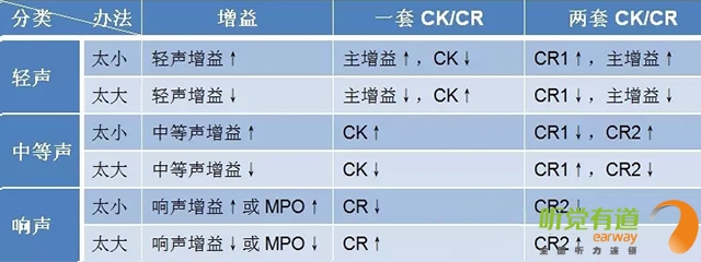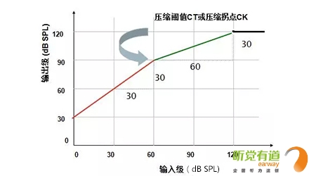 顧名思義,壓縮就是把超過一定強度的聲音減小至聽損患者縮小的殘余聽覺動態范圍里。相較于線性放大,壓縮可以有效達到“小聲聽得見,大聲受得了”的要求,尤其適用于感音神經性患者。</p><p> 壓縮參數主要有三個:壓縮拐點/壓縮閾值(CK/CT)、壓縮比(CR)與壓縮時間(起效時間AT,釋放時間RT)。下圖:橫坐標代表輸入級,即未經助聽器放大的聲音;縱坐標代表輸出級,即放大后的聲音。輸入與輸出的關系:輸出級=輸入級+增益,亦可表示:放大后的聲音=放大前的聲音+放大量。有了這個基礎,我們就可以清楚地理解這兩個參數的含義并進行調節。</p><p> 1、壓縮拐點(CK):線性放大與壓縮放大的臨界輸入級,此處為60 dB SPL,即輸入聲強度在60 dB SPL以下時為線性放大,超過60 dB SPL為壓縮放大。①紅線的輸入級范圍為0~60 dB,這段的聲音為線性放大,隨意找一個輸入級,用它對應的輸出級減去輸入級,得出線性放大的增益為30 dB;②當輸入級大于60 dB時,綠色曲線為壓縮放大,輸出與對應輸入的差值不再是30 dB,而是隨著輸入級增加,增益逐漸減小;③當輸出達到最大輸出限制時,輸出不再增大,保持在最大輸出限制位置。</p><p> </p><center><img alt="" src="/upfiles/201906120320158907.png" width="440" height="250" /></center><p></p><p> 2、壓縮比(CR):輸入級差值與輸出級差值的比值。上圖中線性狀態時壓縮比為1:1,可以找兩對數值,(輸入60-輸入0)/(輸出90-輸出30)=60/60=1:1。壓縮狀態時壓縮比為2:1,同樣可以找兩對數值,(輸入120-輸入60)/(輸出120-輸出90)=60/30=2:1。</p><p> 3、壓縮方式(CM):由于起效時間(AT)與釋放時間(RT)的不同組合構成不同的壓縮方式。</p><p> 助聽器由線性變換到壓縮時所需的穩定時間為起效時間。起效時間短,說明對大聲壓縮及時,不會造成聽力傷害;起效時間長,說明對大聲壓縮緩慢,有可能短暫感覺刺耳,但可以最大程度還原小聲與大聲的強度差異感。</p><p> 助聽器由壓縮回到線性時所需的穩定時間為釋放時間。釋放時間短,說明對小聲及時線性放大,避免小聲聽不見;釋放時間長,說明對小聲還在壓縮,放大不及時,有可能小聲聽不見,但可以最大程度還原大聲和小聲的強度差異感。</p><p> 我們可以做個比喻來了解壓縮的概念。假使你在高速路上,突然前方出現一個大大的警示牌,提示有事故發生,這時你需要迅速踩剎車以防撞擊。越早踩剎車相當于越早壓縮(壓縮拐點越小),剎車的力度越大相當于壓縮比越大,開始剎車至時速降至安全時速所需時間相當于起效時間,過了事故點踩油門,車速恢復至高速所需時間相當于釋放時間。</p><p> 壓縮是為了保護人們聽覺系統免受瞬間或持續中、大強度聲音的刺激,同時又能有效放大各種小聲的基本技術手段,可以使小聲、中等聲和大聲無一遺漏地進入聽障患者縮小的聽覺動態范圍中。</p><p> 恰當的壓縮拐點與壓縮比滿足了聽障患者達到“小聲聽得見、大聲受得了”的要求,而壓縮的起效時間與釋放時間設定需要考慮聽障患者個性化的聆聽喜好。</p><p> 起效時間與釋放時間都短,優點是小聲放大及時、大聲壓縮及時,即小聲聽得到大聲不覺吵,缺點是大小聲強度差異感不大;起效時間短釋放時間長,優點是大小聲強度差異感真實,音節間噪聲小,缺點是有可能小聲放大不足。</p><p> 事實上,各企業的助聽器軟件往往可以直接調節輕聲增益、中等聲增益、大聲增益與主增益而間接控制壓縮參數,有的軟件可見一套CK/CR,有的軟件可見兩套CK/CR。有些軟件會自動默認為自適應壓縮方式,能夠根據聲音強度差異自動調整。</p><p> 下圖匯總了對不同強度聲音不適的解決辦法,供大家參考。</p><p> </p><p><center><img alt="" src="/upfiles/201906120320202761.png" width="640" height="240" /></center><center><p style="text-align: left;"> 更多詳情請登錄聽覺有道助聽器www.zhengzhoufuke.com</p><br /></center></p>" />