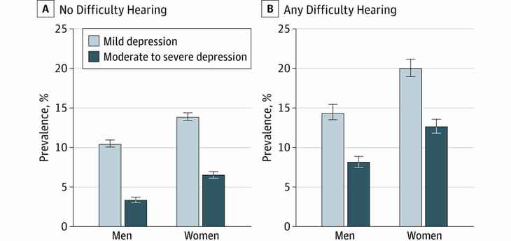 <br /> “世界是孤獨的。”<br /><br /> “其他人的一切與我無關(guān)。”<br /><br /> “我寧愿一輩子呆在家里,不想跟別人接觸,反正交流也不好。”<br /><br /></span><p><span style="font-size:16px;"> “唯一比別人聽得更好的,是內(nèi)心流淚的聲音。”</span></p><p style="text-align: center;"><span style="font-size:16px;"><img src="/upfiles/202104060521541714.jpg" width="640" alt="" /><br /></span></p><span style="font-size:16px;"><br /> <strong> 聽力損失與抑郁癥真的有關(guān)系嗎?</strong><br /><br /> 美國耳聾與言語疾病研究所最新的一項調(diào)查證實了這點。<br /><br /> 自述有聽力損失的成年人(18至69歲)中,有30%以上的人患有不同程度的抑郁癥。<br /></span><p><span style="font-size:16px;"> 該調(diào)查還發(fā)現(xiàn),若聽力損失加重或未采取合理的解決方案,那么患抑郁癥的概率會增加。</span></p><p><span style="font-size:16px;"><br /></span></p><p style="text-align: center;"><span style="font-size:16px;"><img src="/upfiles/202104060522195319.jpg" width="640" alt="" /><br /></span></p><span style="font-size:16px;"><br /> 左邊為沒有聽力損失的抑郁概率,右邊為有聽力損失的抑郁概率。統(tǒng)計來源:《美國醫(yī)學(xué)雜志》<br /><br /> 實際上,2019年的另外一項研究也發(fā)現(xiàn):65歲以上的老年人中,20%以上的人可能會出現(xiàn)抑郁的情況。<br /><br /> <strong>那么,為什么聽力損失會影響到抑郁癥呢?</strong><br /><br /> 抑郁是一種情緒障礙,會引起持續(xù)的憂傷和冷漠感。它影響到人們的日常生活,并導(dǎo)致身心出現(xiàn)一系列的問題。<br /><br /> 英國曼徹斯特大學(xué)的聽力教授Piers Dawes博士說道:“聽力受損的人比較容易抑郁,因為‘跟上別人’所要的付出讓大家感到壓力。遠離社交,可以避免短暫的交流,但是不幸的是,越是在與人交流中退縮,就更容易受抑郁癥的困擾。”<br /><br /> 聽力損失支援小組的David B分享道:“無法確定聽到的內(nèi)容是否正確,那么就會感覺到失去了足夠的社交能力。而且,當(dāng)別人在高談闊論時,自己卻無法參與,會有被孤立的感覺。”<br /><strong><br /> 如何應(yīng)對抑郁?</strong><br /><br /> 敢于面對和表達自己的情況,是康復(fù)的第一步。<br /><br /> Piers Dawes博士指出:“輕度抑郁癥,跟朋友和家人進行良好的溝通就能緩解;中度則可以從認知行為療法(CBT)中受益;而更嚴重的抑郁,可以需要抗抑郁藥配上CBT結(jié)合實施。”<br /><br /> David B講了自己對抗抑郁的經(jīng)驗。<br /><br /> “雖然剛開始在社交中會缺乏安全感,但是只要勇敢跟別人說話,慢慢地就會更加舒適和自信。如果聽不清,我不會要求別人重復(fù)說過的話,而是請求別人幫我解釋。這樣一來,別人就不必大聲重復(fù),而是會用恰當(dāng)?shù)恼Z氣用更好的詞匯來表達。”<br /><br /> 當(dāng)然,使用助聽器能夠幫助人們更好地溝通并增強信心。但是,它本身并不是專治抑郁的靈丹妙藥。<br /><br /> Dawes博士說:“耳部和聽力保健是全民健康覆蓋的重要部分。助聽器可以幫助聽損人士變得更加積極樂觀,但是也有很多其他因素會影響到心理健康。”<br /><br /></span>" />
