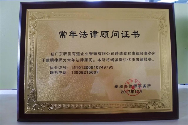<span style="font-size:16px;"></span></p><p style="text-align: center;"><span style="font-size:16px;"><img src="/upfiles/201801230437528599.jpg" alt="" /><br /></span></p><p style="text-align: center;"><span style="font-size:16px;"><br /></span></p><p><span style="font-size:16px;"> 為從源頭上有效防范和化解經(jīng)營風(fēng)險(xiǎn),聽覺有道全國運(yùn)營管理中心聘請著名律師干建明先生及其團(tuán)隊(duì)擔(dān)任聽覺有道公司投融資法律事務(wù)常年法律顧問,聘請著名律師潘秋波先生及其團(tuán)隊(duì)擔(dān)任聽覺有道日常經(jīng)營法律事務(wù)常年法律顧問,聘請著名財(cái)稅專家周晨先生及其團(tuán)隊(duì)擔(dān)任常年財(cái)稅顧問,共同為正在快速擴(kuò)張的全國聽力連鎖業(yè)務(wù)保駕護(hù)航。</span></p><p><span style="font-size:16px;"> 據(jù)悉,根據(jù)助聽器行業(yè)以及聽覺有道日常經(jīng)營活動(dòng)的特點(diǎn),在法律顧問方面聽覺有道將獲得企業(yè)日常運(yùn)營法律風(fēng)險(xiǎn)防控、各類業(yè)務(wù)合同法律風(fēng)險(xiǎn)防控、企業(yè)知識產(chǎn)權(quán)風(fēng)險(xiǎn)防控、日常法律咨詢幫助等專業(yè)服務(wù)。</span></p><p><span style="font-size:16px;"><br /></span></p><p><center><img src="/upfiles/201801230437323749.jpg" alt="" /></center><center><br /></center></p><p><center><img src="/upfiles/201801230438078765.jpg" alt="" /></center><center><br /></center></p><p></p><p><span style="font-size:16px;"> 根據(jù)聽覺有道發(fā)展規(guī)劃,在財(cái)稅顧問方面,聽覺有道將獲得專業(yè)財(cái)務(wù)規(guī)劃與稅務(wù)籌劃、資本運(yùn)營策劃等專業(yè)咨詢服務(wù)。</span></p><p><span style="font-size:16px;"><br /></span></p><p><center><img src="/upfiles/201801230438149231.jpg" alt="" /></center><center><br /></center></p><p></p><p><span style="font-size:16px;"> 聽覺有道一直秉承合法經(jīng)營、公平競爭的原則,相信干建明先生及其團(tuán)隊(duì)、潘秋波先生及其團(tuán)隊(duì)、周晨先生及其團(tuán)隊(duì),將為這一原則的貫徹執(zhí)行,發(fā)揮不可估量的作用,有力地保障聽覺有道穩(wěn)健、快速的發(fā)展。</span></p><p><span style="font-size:16px;"></span></p>" />